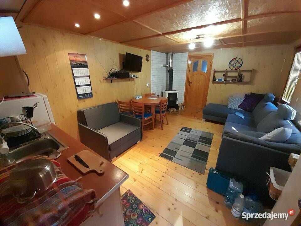 Opis Na sprzedaż dom letniskowy o łącznej powierzchni 34 m2. LOKALIZACJA: Domek drewniany zlokalizowany na terenie ośrodka stowarzyszenia „Rusałka” nad jeziorem Wełtyń. Dogodny dojazd 15 minut z Gryfina, 30 minut ze Szczecina. Teren ośrodka jest ogrodzony i strzeżony całodobowo. Przy domku przestrzeń zagospodarowana (trawnik, nasadzenia kwiaty, krzewy). Przy domku zagospodarowane miejsce do ustawienia grilla, stołu i miejsc do odpoczynku na świeżym powietrzu. Możliwość montażu hamaka. W pobliżu domku plac zabaw dla dzieci, boisko, miejsce na ognisko. Piękne miejsce: las, widok na jezioro, cisza i śpiew ptaków. Wiewiórki jedzą z ręki. Idealne miejsce dla osób pragnących spędzać wolny czas w cichej i spokojnej okolicy, w otoczeniu terenów zielonych w pobliżu jeziora. DOMEK – dane techniczne: 1. jednokondygnacyjny z poddaszem gospodarczym, 2. powierzchnia 34 m2 w tym: - jedna izba z aneksem kuchennym, - taras zadaszony i oszklony, - łazienka (kabina prysznicowa, umywalka, WC) - składzik z osobnym wejściem. - drewniane okna i drzwi. - domek pokryty gontem bitumicznym. 3. drewutnia wolnostojąca z zamykanym pomieszczeniem na narzędzia. INFRASTRUKTURA TECHNICZNA: - dom ocieplony wełną mineralną, - instalacja wody bieżącej – z instalacji ośrodka, który ma własne ujęcie. - woda ciepła – elektryczne podgrzewacze wody w łazience i aneksie kuchennym, - energia elektryczna - z sieci elektroenergetycznej ośrodka– własny podlicznik, - odprowadzenie ścieków – do instalacji ośrodka, - ogrzewanie – kominek opalany drewnem, - gaz do kuchenki – butla 11 kg. - ujęcie wody do podlewania kwiatów. Instalacja kominowa corocznie sprawdzana przez kominiarza. Instalacja elektryczna przegląd pięcioletni wykonany w 2025r.Powiadom o podobnych ogłoszeniach